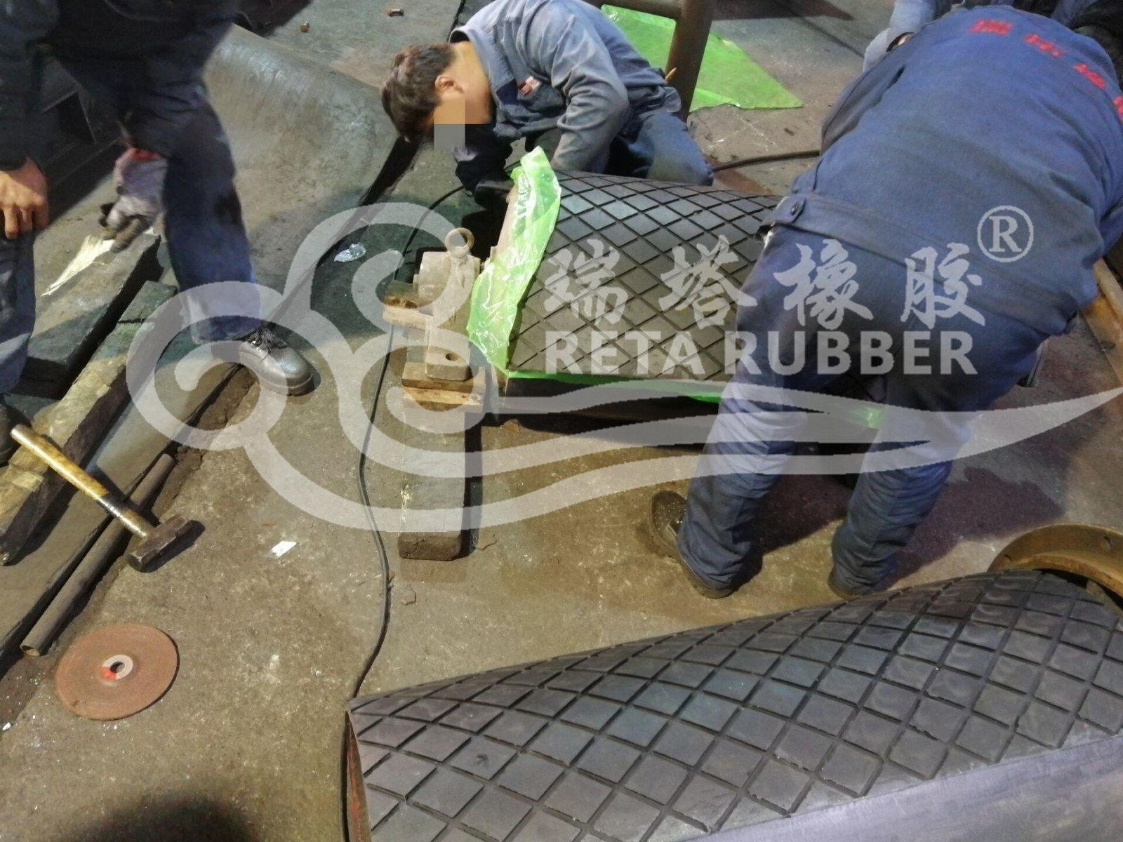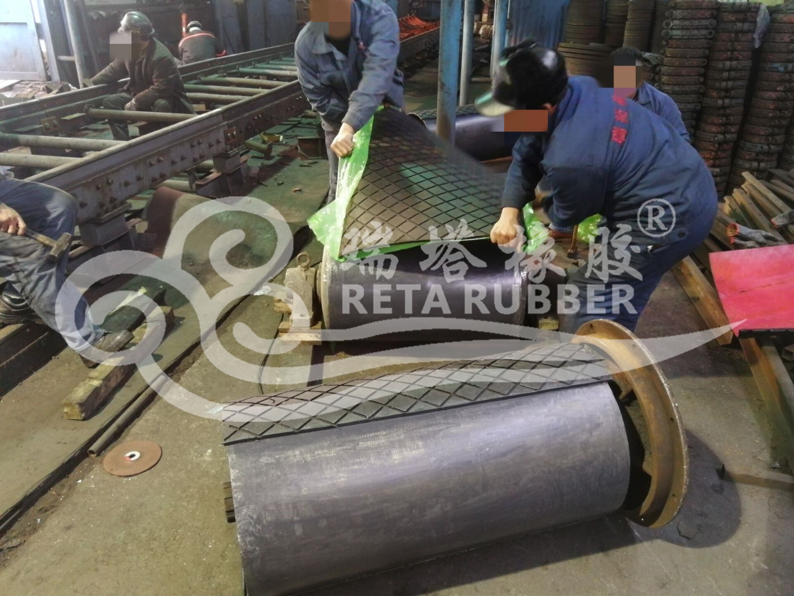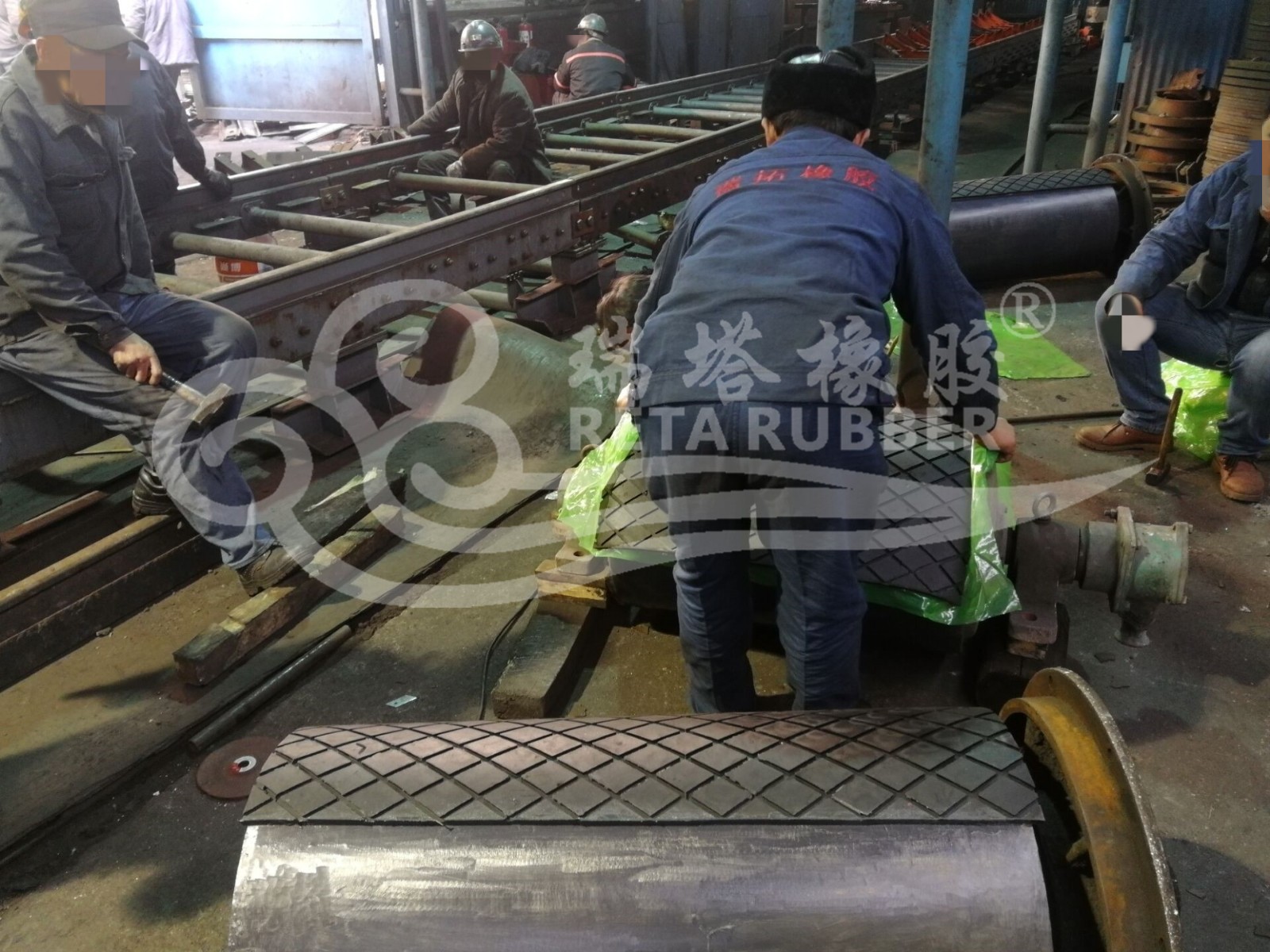 鄭煤集團100㎡滾筒包膠現場施工