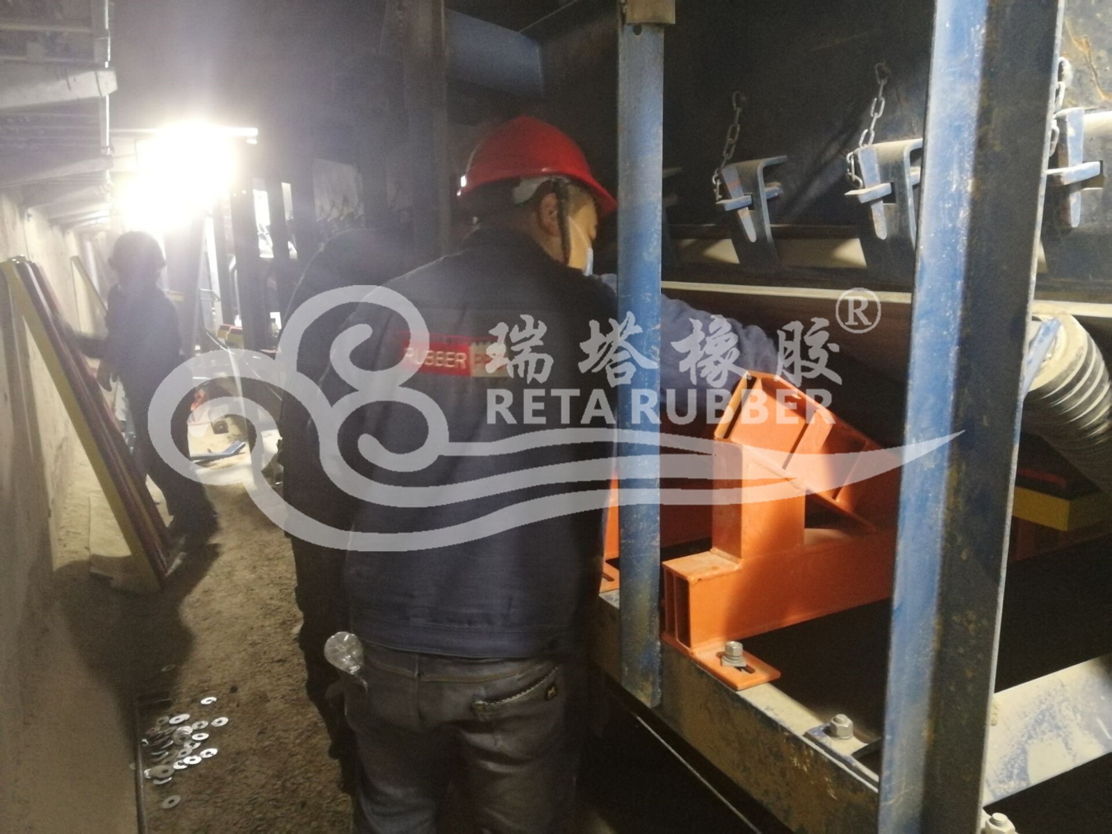 瑞塔橡膠緩沖床現(xiàn)場安裝中